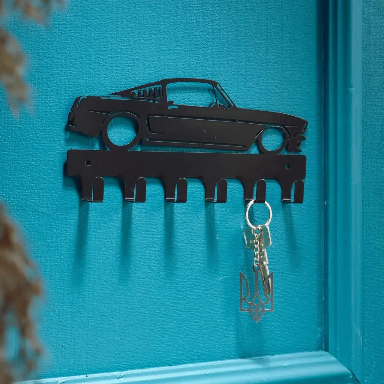 Ключница настенная металлическая, 24х11см, Цвет «черный», машина на 6 крючков