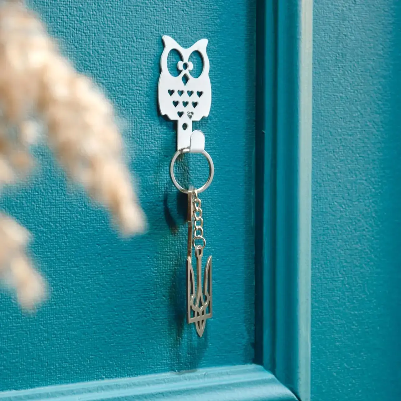 Ключница настенная металлическая, 6.5х4см, Цвет «белый», сова на 1 крючок