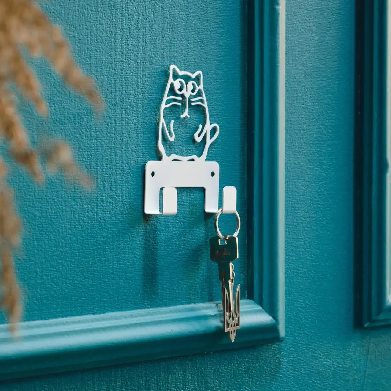Ключница настенная металлическая, 8х11.5см, Цвет «белый», котик на 2 крючка