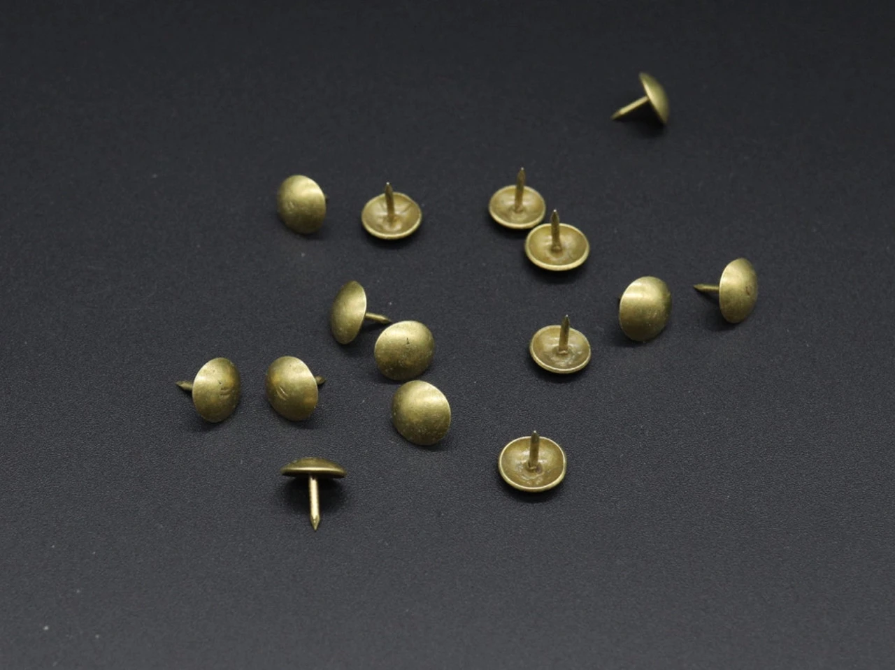 У всех декоративных гвоздей главной особенностью является шляпка. Чаще всего она сферическая, но бывает и плоской, поверхность может быть гладкой и рельефной. В нашем ассортименте есть разнообразные варианты, поэтому вы легко сможете выбрать нужную разновидность по форме и размеру (с большой шапочкой, с длинной ножкой или короткой, тонкой или толстой). Также при выборе учитывается размер (это есть стандарты, и в нашем каталоге этот параметр указан к каждой товарной позиции).