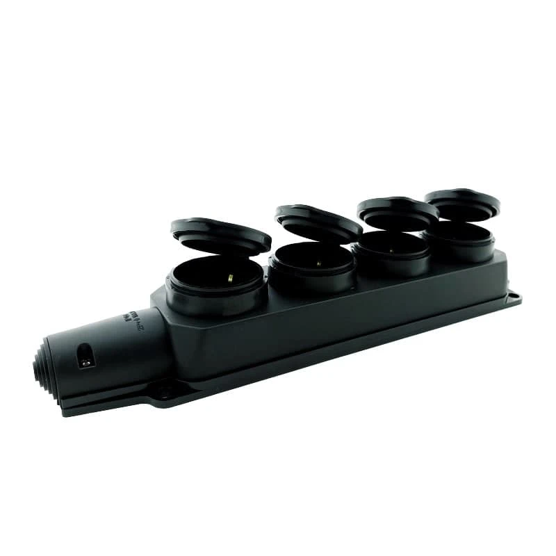 Колодка с заземлением с крышкой 4 гнезда, каучук, черный