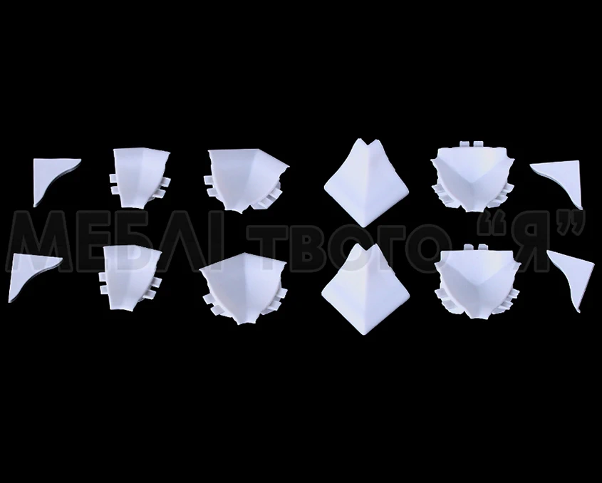 Угловые соединения: Они используются для обеспечения гладкого и аккуратного соединения плинтусов под углом 90 градусов. Благодаря этому углы кухонной мебели выглядят привлекательно и закончено.