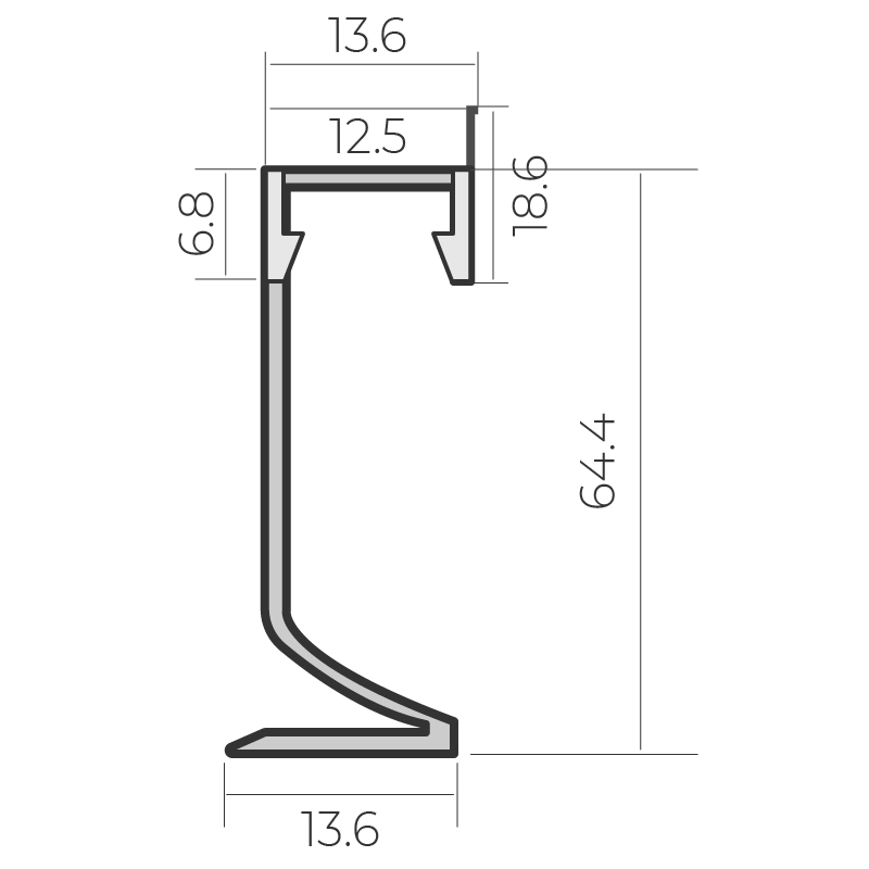 Комплект алюминиевого профиля под плинтус с матовым рассеивателем 2 м, 13,6×64,4 мм, серебряный