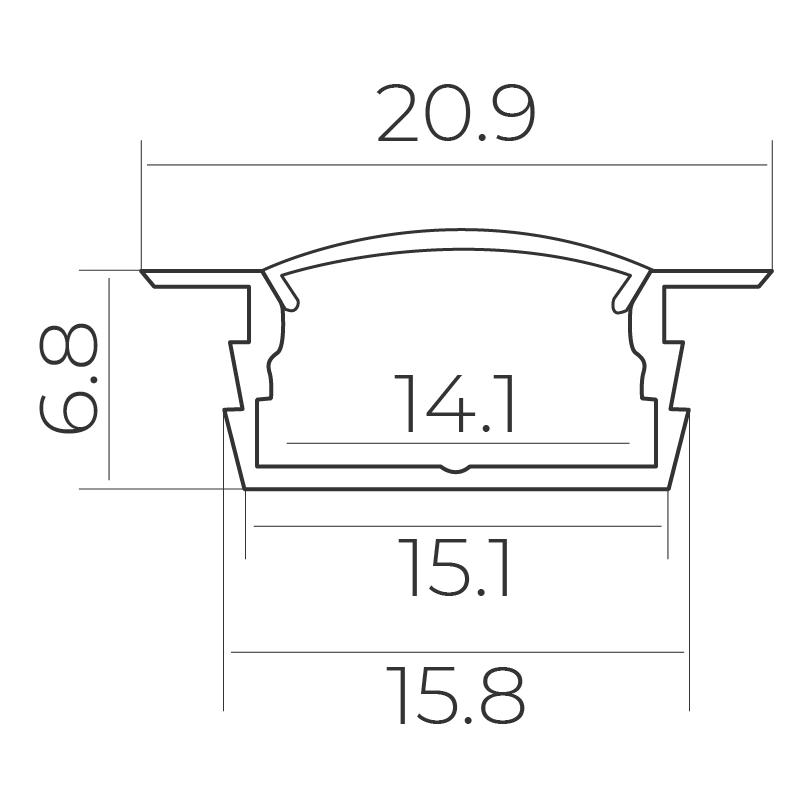 Комплект алюминиевого врезного профиля и матового рассеивателя 2 м, 20,9×6,8 мм, серебряный