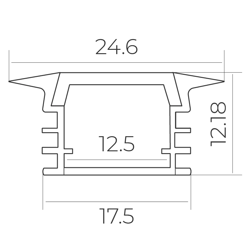Комплект врезного алюминиевого профиля с матовым рассеивателем 2 м, 24,6×12,18 мм, серебряный