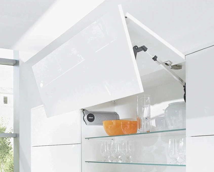 Aventos HF подходит для фасадов разного стиля - из древесины, стекла или их комбинаций. Механизм не нарушает внешнего вида мебели, ведь система крепится скрыто, сохраняя эстетику интерьера. Также предусмотрена интеграция с электрической системой Servo-Drive, которая обеспечивает автоматическое открывание дверцы легким нажатием - идеальное решение для современных кухонь, где функциональность сочетается с комфортом.