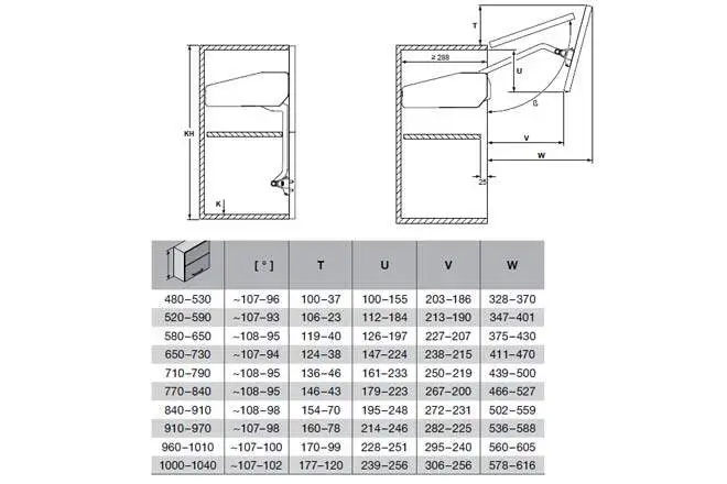 Підйомник FREE FOLD завдяки складеному типу відкриття мінімізується робоча зона механізму. Можливе застосування частин фасаду з різних матеріалів. Застосовується для шаф висотою 480 та глибиною 450 мм., витримує навантаження до 5,6-11,3 кг. Регулювання відбувається по висоті ± 1,5 мм, кут нахилу ± 1,5 °.