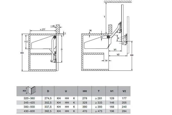 Підйомник FREE UP розроблений для паралельного підйому фасаду вгору, не вимагає місця перед шафою. Застосовується для шаф висотою 500 і глибиною 380 мм. Витримує навантаження до 6,3-11,8 кг. Регулювання відбувається за висотою ± 1,5 мм, кут нахилу ± 1,5 °.