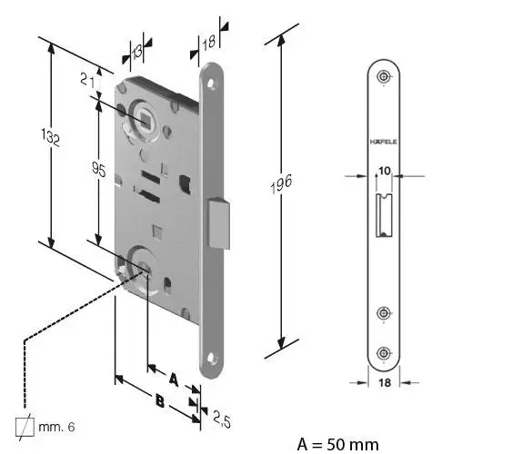 Комплект механического замка с прямой планкой и шурупами WC 18х196мм сталь никелированная полированн