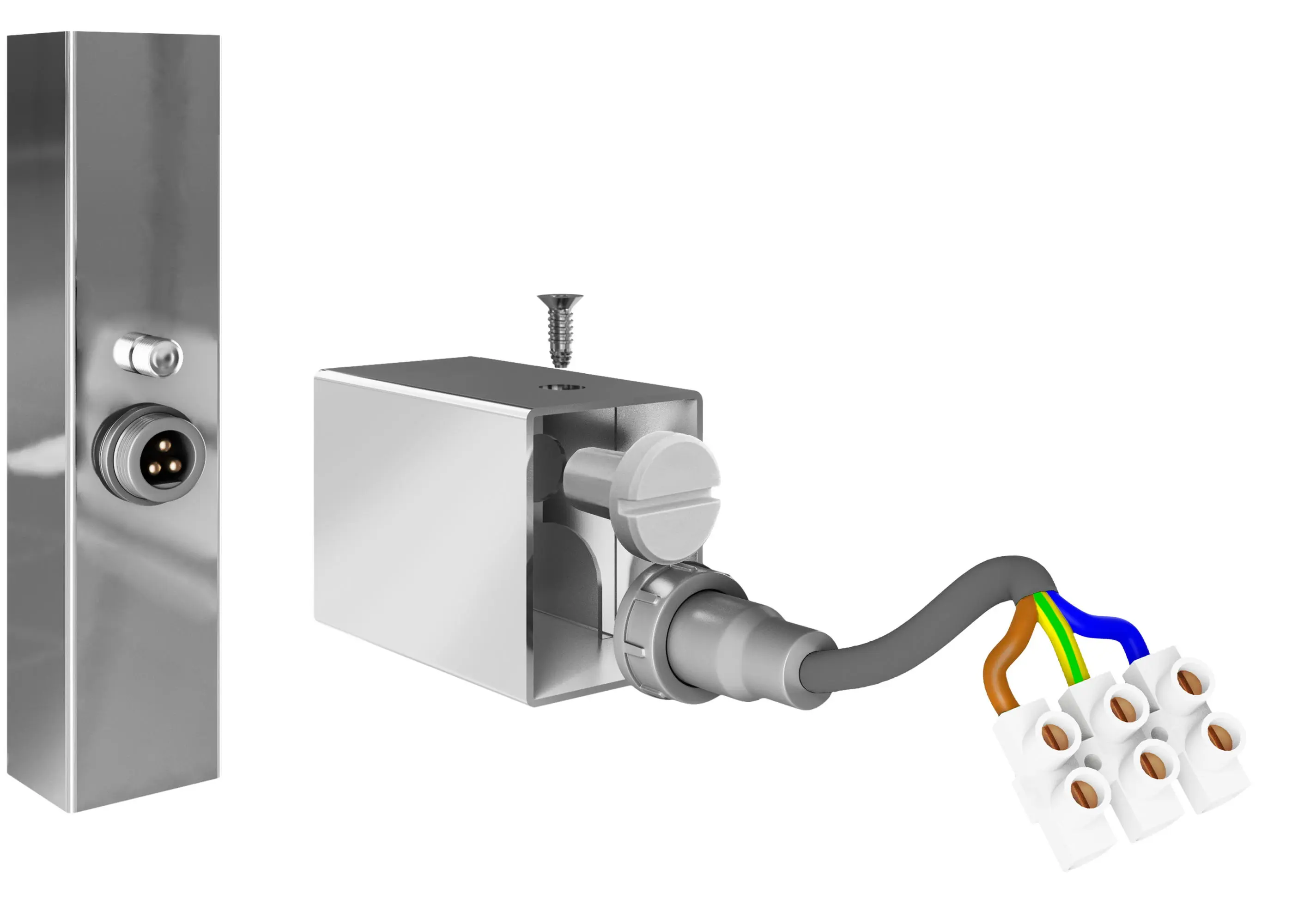 Комплект прихованого підключення під профільний стояк електричної рушникосушарки Маріо. Дозволяє швидко і просто провести монтаж електричної рушникосушарки. Сумісний з усіма типорозмірами моделей: Класік HP-I, Люкс HP-I, Стандарт HP-I, Трапеція HP-I, Преміум Люкс-I, Преміум Стандарт-I, Преміум Класік-I, Токіо-I, Гера-I, Гера-Люкс-I, Анталія.
