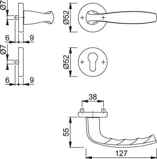 • Осьове з'єднання дверної ручки пройшло випробування у відповідності з DIN EN 1906