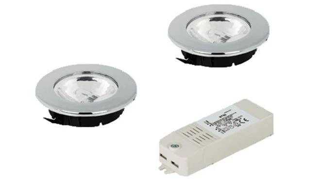 Комплект світильників, з конвертером 60 Вт і кабелем, 12В 2 x 20 Вт, пластмаса хромований матовий 82
