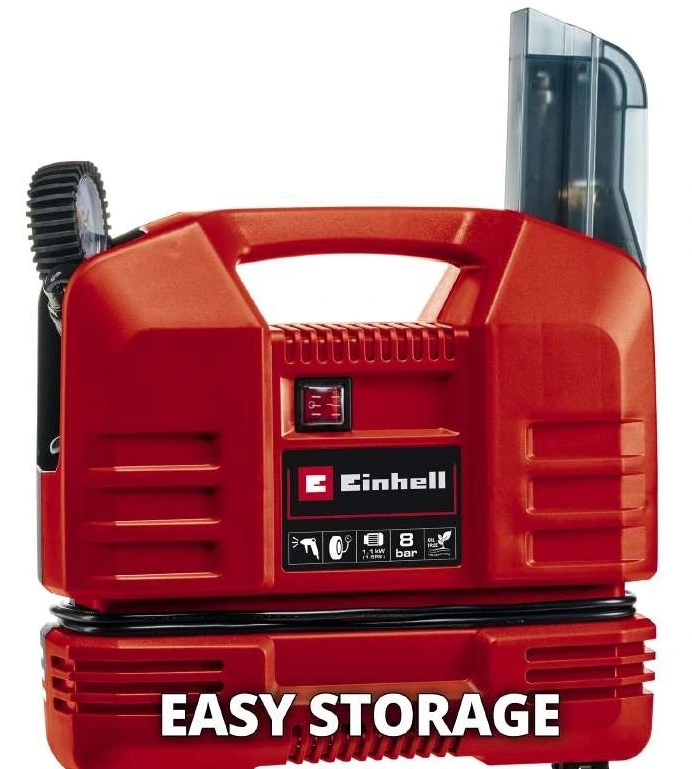 Безмасляний потужний повітряний компресор Einhell TC-AC 190 OF Set ефективний компресор, легкий, компактний та ергономічний дизайн, який робить його універсальним та мобільним у використанні. Компактний, практичний компресор ідеально підходить як мобільний підкачувач шин для автомобіля, велосипеда чи мотоцикла або як «повітряний насос» для літніх розваг на озері. Портативний компресор також може знадобитися в майстерні, наприклад, у поєднанні з продувною насадкою для очищення робочих поверхонь.