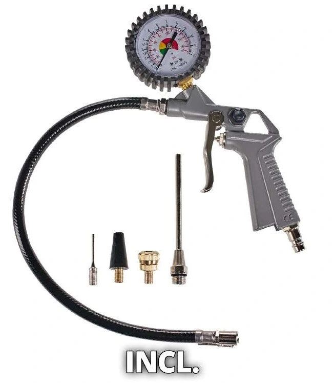- Комплектация адаптери; пістолет для різних насадок з манометром
