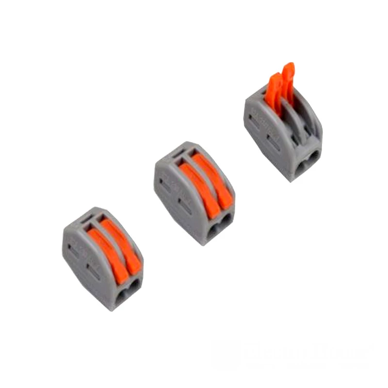 Благодаря простоте установки, для соединения проводов не требуется использовать дополнительные инструменты. Достаточно вставить токовые проводки с обеих сторон коннектора и нажать на три удобных рычага, чтобы осуществить надежное самозажимное соединение. Это позволяет избежать традиционных методов, таких как пайка, упрощая процесс монтажа и сокращая время.