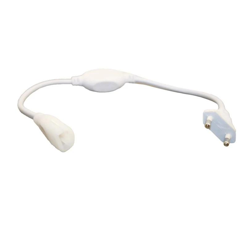 Коннектор для СОВ неону 220В 6х11, 15 см EH-STR-C22011 призначений для підключення LED стрічки, розрахованої на живлення від мережі з напругою 220В. Це випрямляч (діодний міст). Така стрічка не може підключатися до електромережі без його використання. Конектор EH-STR-C22011 бренду ElectroSpace робить монтаж і підключення швидким і простим, з одного боку знаходиться Штепсельна вилка для підключення до джерела живлення, а з іншого – голчастий роз'єм, що приєднується до LED стрічці без пайки й використання інструментів.