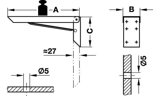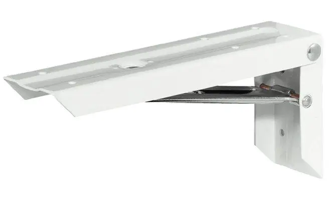 Консоль, відкидна, з фіксатором, матеріал: сталь, колір: білий, розмір 200х61х115 мм, діаметр отворів 5 мм, максимальне навантаження на пару 100 кг.