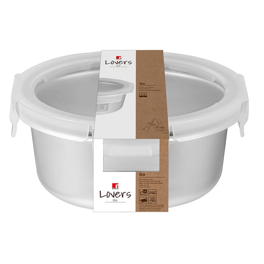 Контейнер для зберігання з нержавіючої сталі Bergner Go Lovers, 1,5 л, круглий