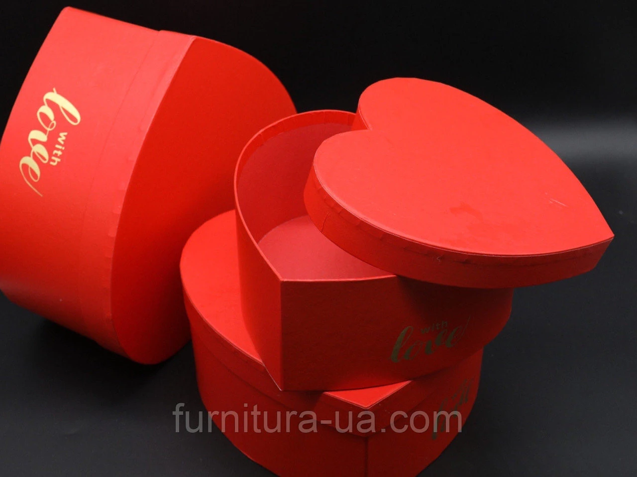 Коробка подарочная, Сердце, 25х25х12см, Цвет «красный», 3шт
