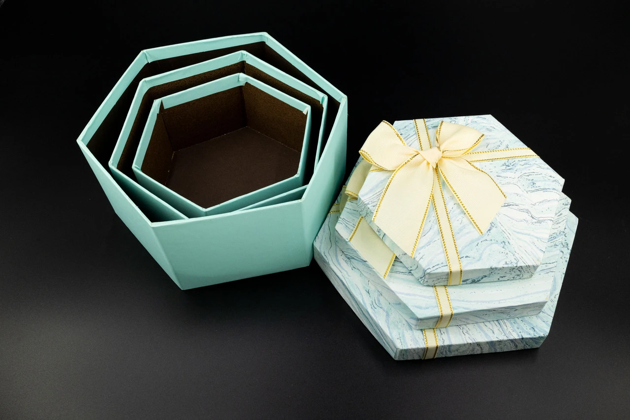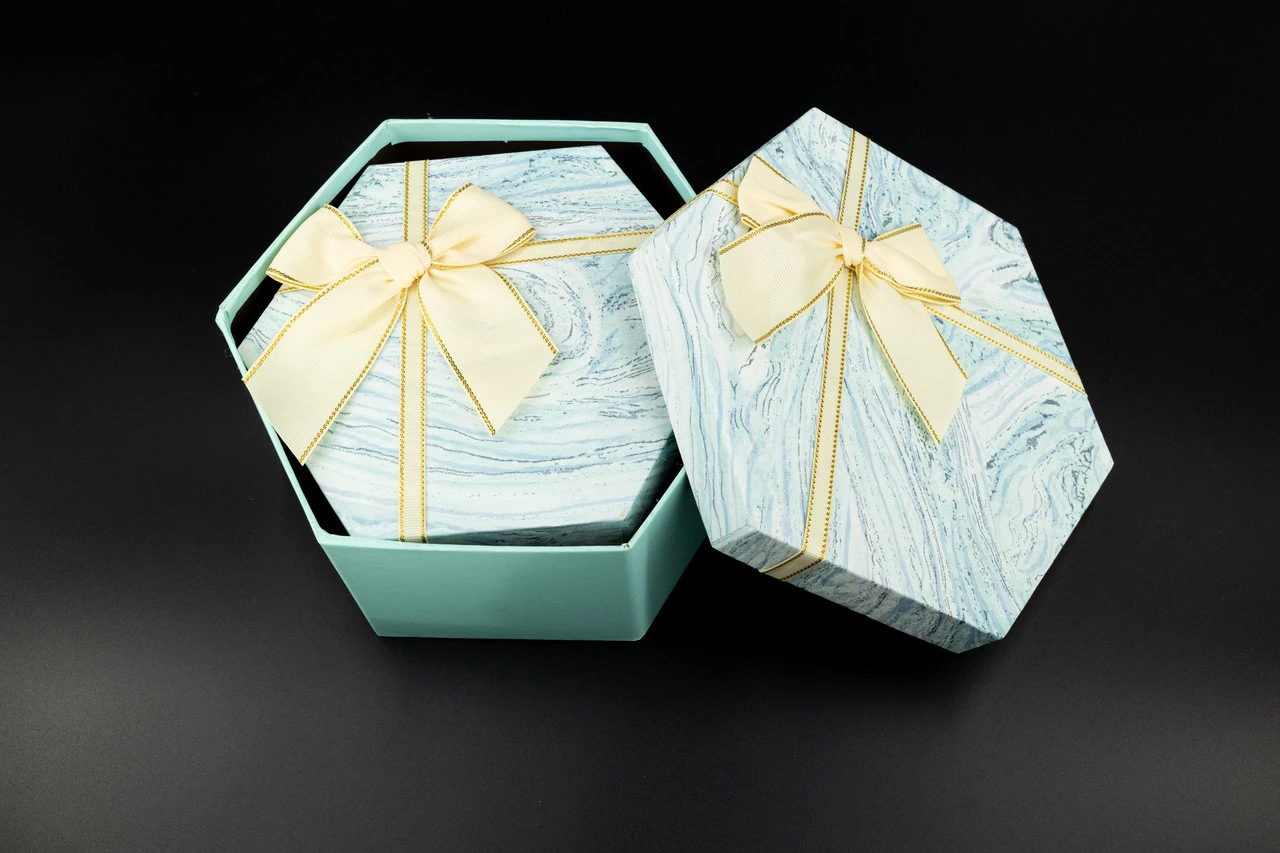 Коробки изготавливаются из различных материалов: картона, дизайнерской бумаги, дерева или металла. Они могут быть разных размеров, форм и дизайнов – от классических строгих вариантов до ярких праздничных с принтами, лентами и декоративными элементами.