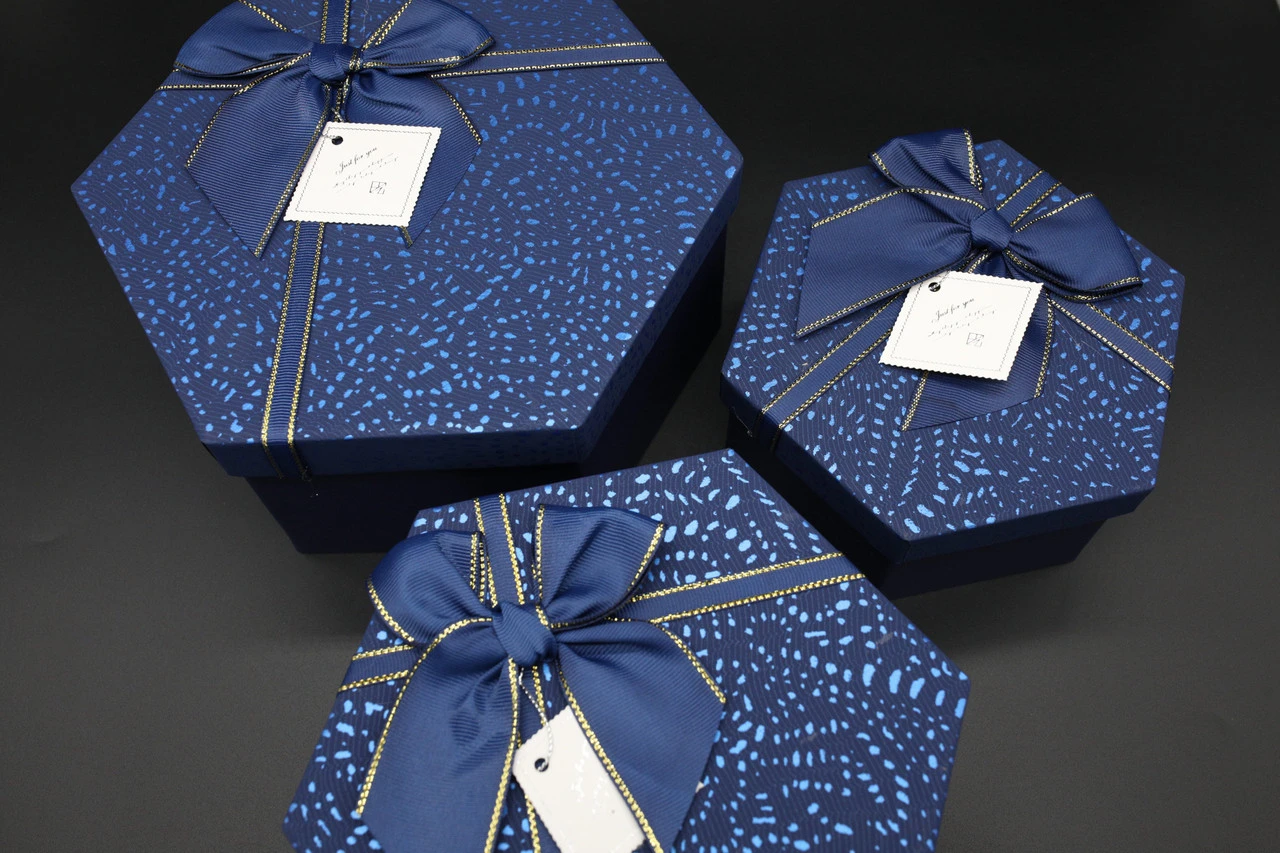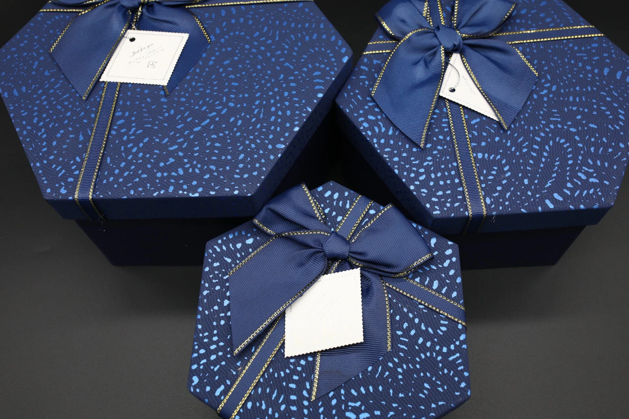 Коробка подарочная с бантиком, 19х10см, Цвет «синий», 3шт