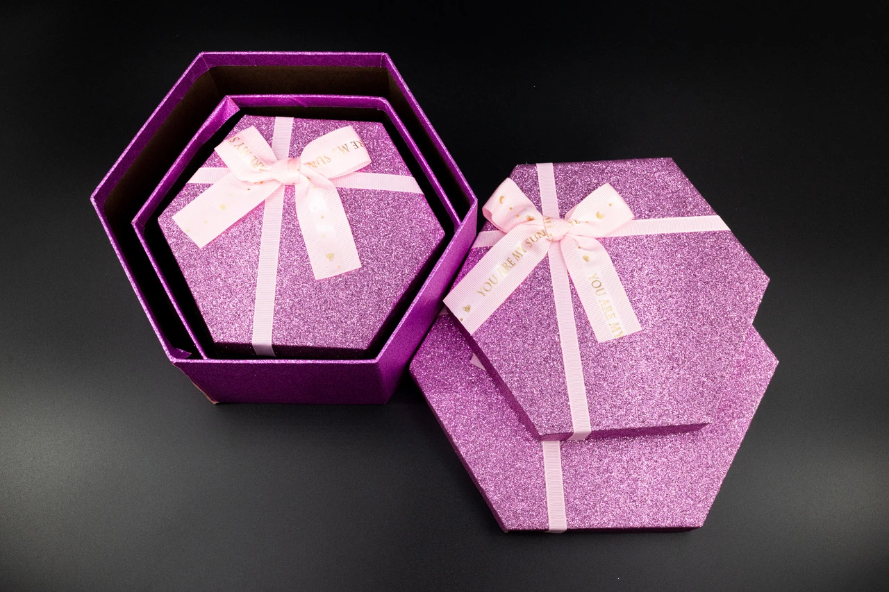 Коробка подарочная, 19х10см, Цвет «розовый глиттер», 3шт