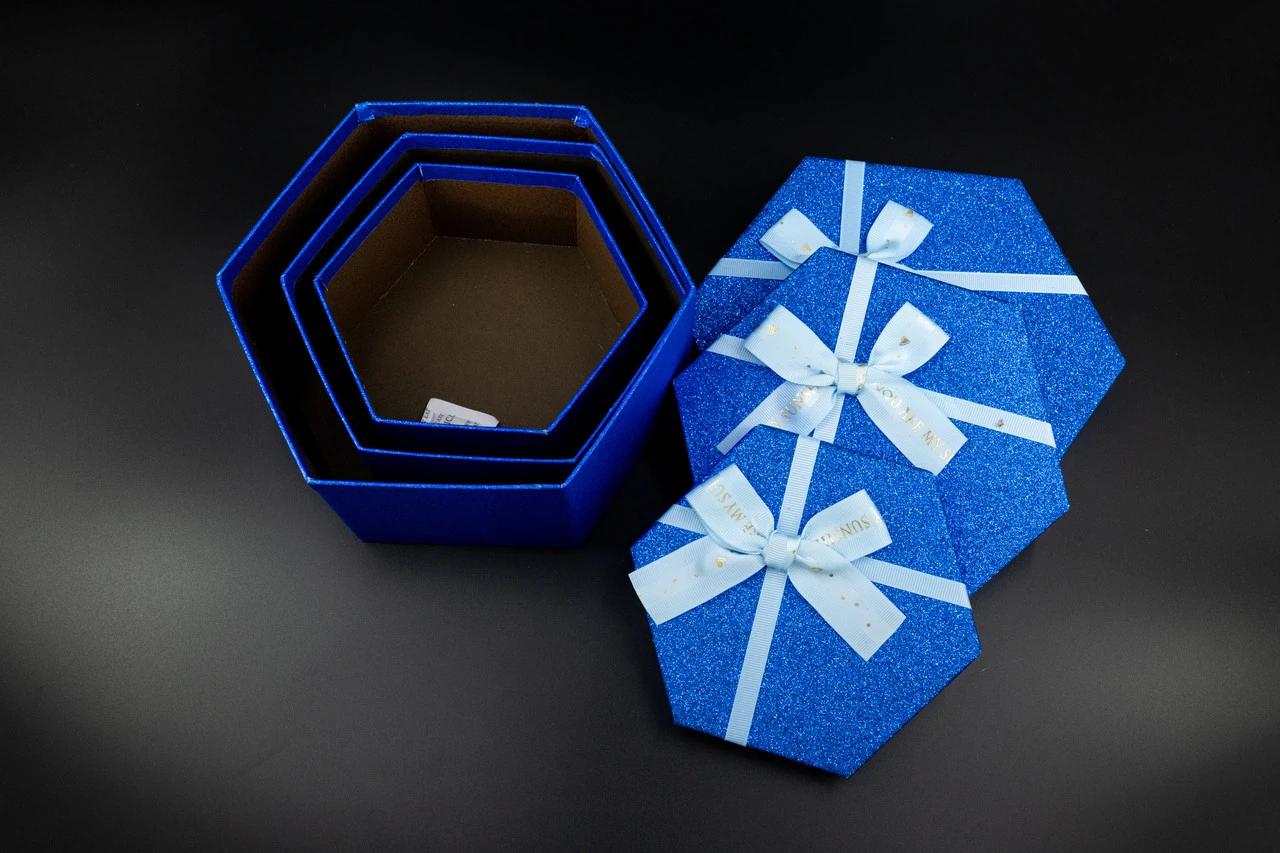 Коробка подарочная, 19х10см, Цвет «синий глиттер», 3шт