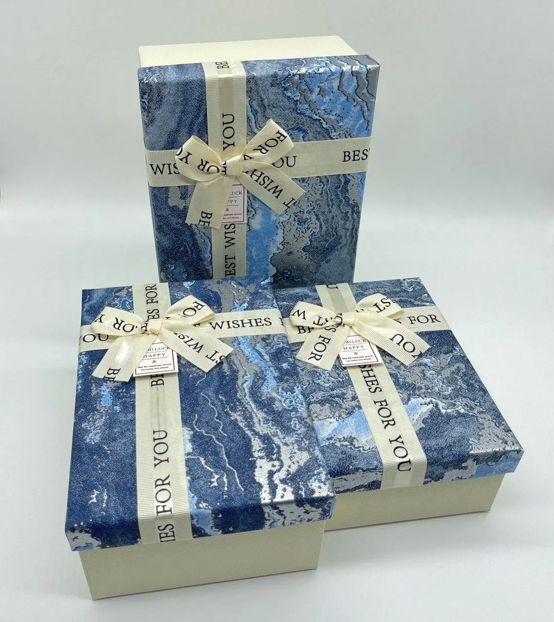 Коробка подарочная с бантиком, 23х16х10см, Цвет «синий», 3шт