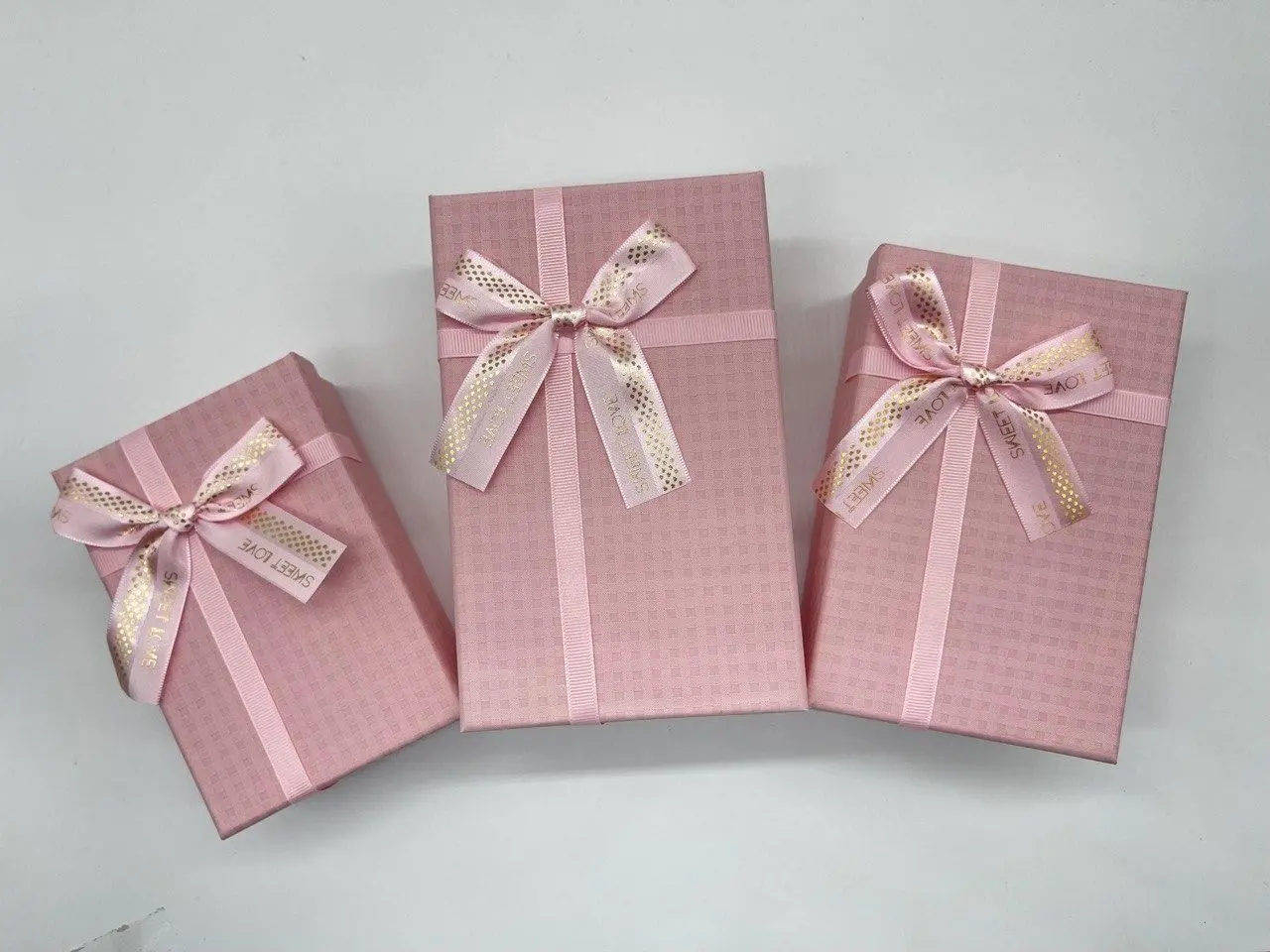 Коробка подарочная с бантиком, 19х12х7см, Цвет «Розовый», 3шт