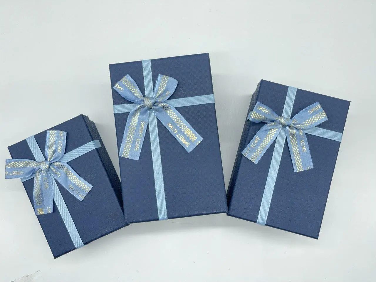 Коробка подарочная с бантиком, 19х12х7см, Цвет «синий», 3шт