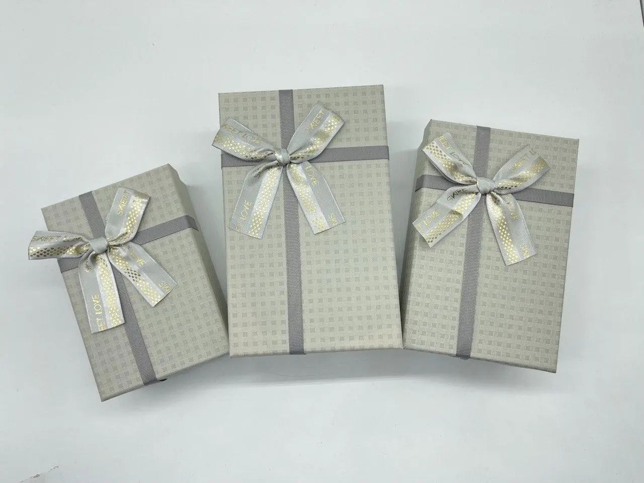 Коробка подарочная с бантиком, 19х12х7см, Цвет «серый», 3шт
