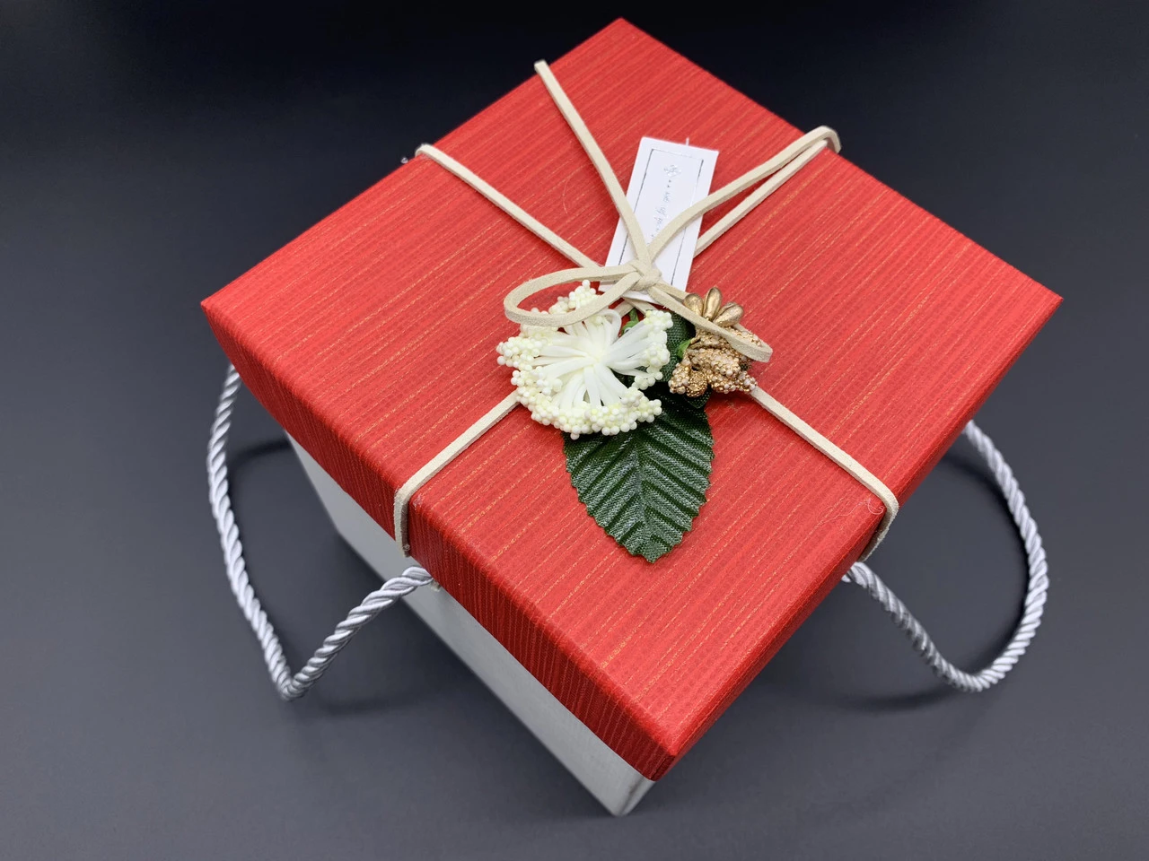 Коробка подарочная с цветочком и ручками, 13х13х13см, Цвет «красный»