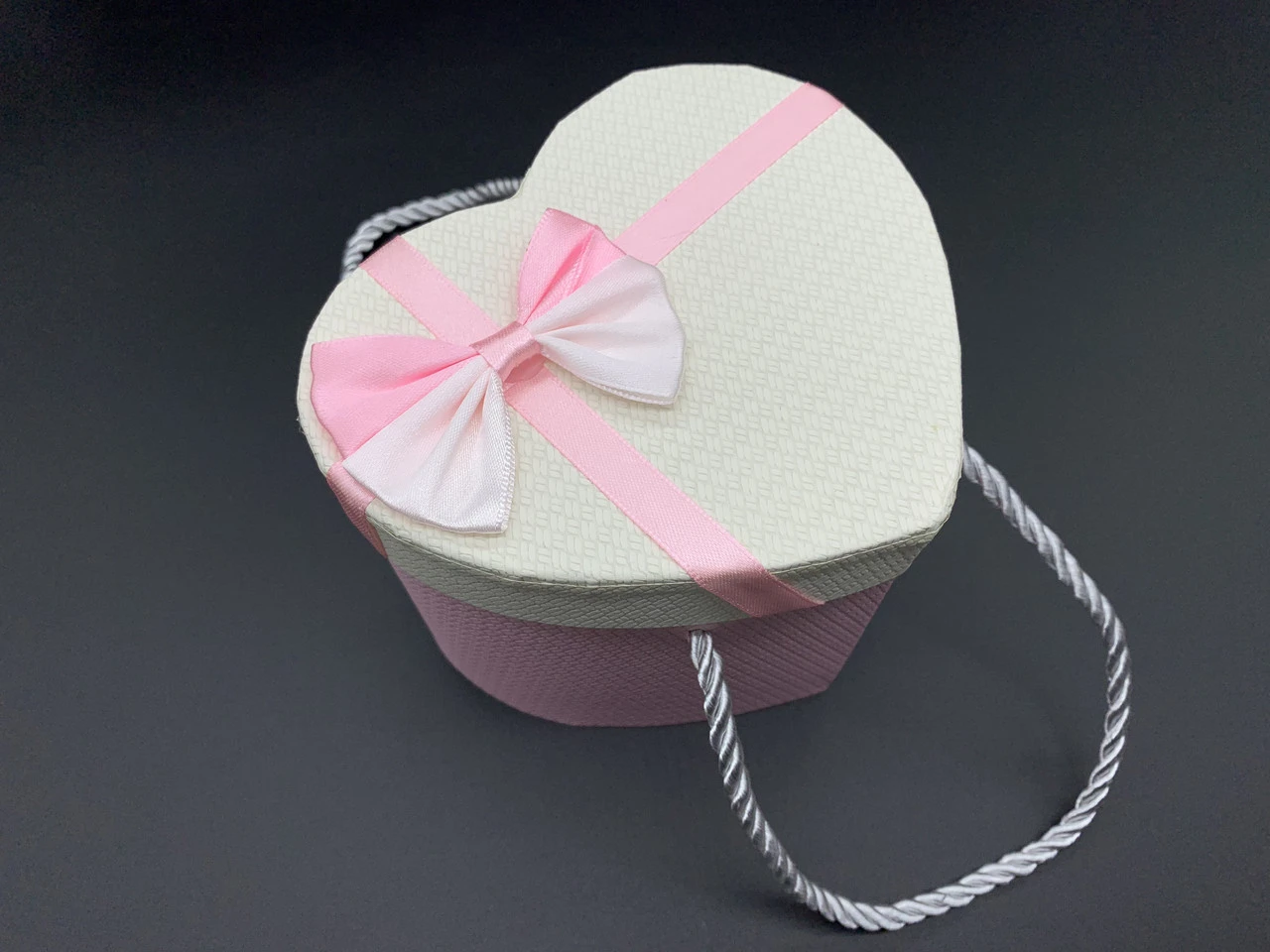 Коробка подарочная с ручками и бантиком, Сердце, 15х12х12см, Цвет «бело-розовый»