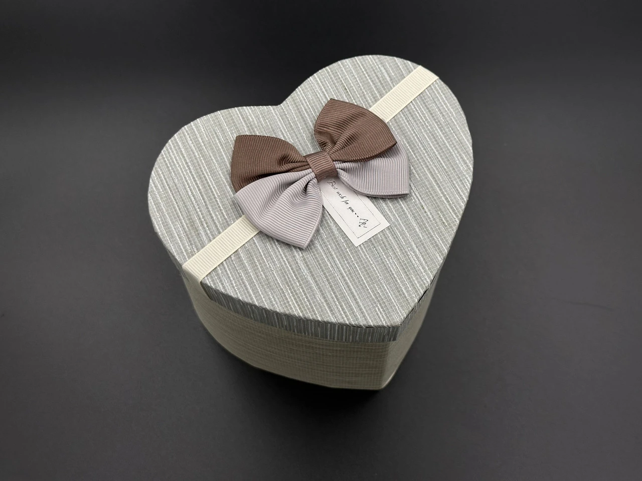 Коробка подарочная с ручками и бантиком, Сердце, 15х12х12см, Цвет «серый»