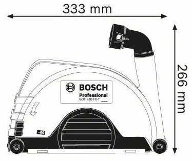 Системний аксесуар Bosch GDE 230 FC-T Professional одночасно підключається до болгарок Bosch з діаметром диска 230 мм і до пилососів. Необхідний для ефективного видалення пилу під час різання пилеобразующих матеріалів, таких як бетон, камінь, плитка і т.д. Регульована глибина різання до 60 мм.