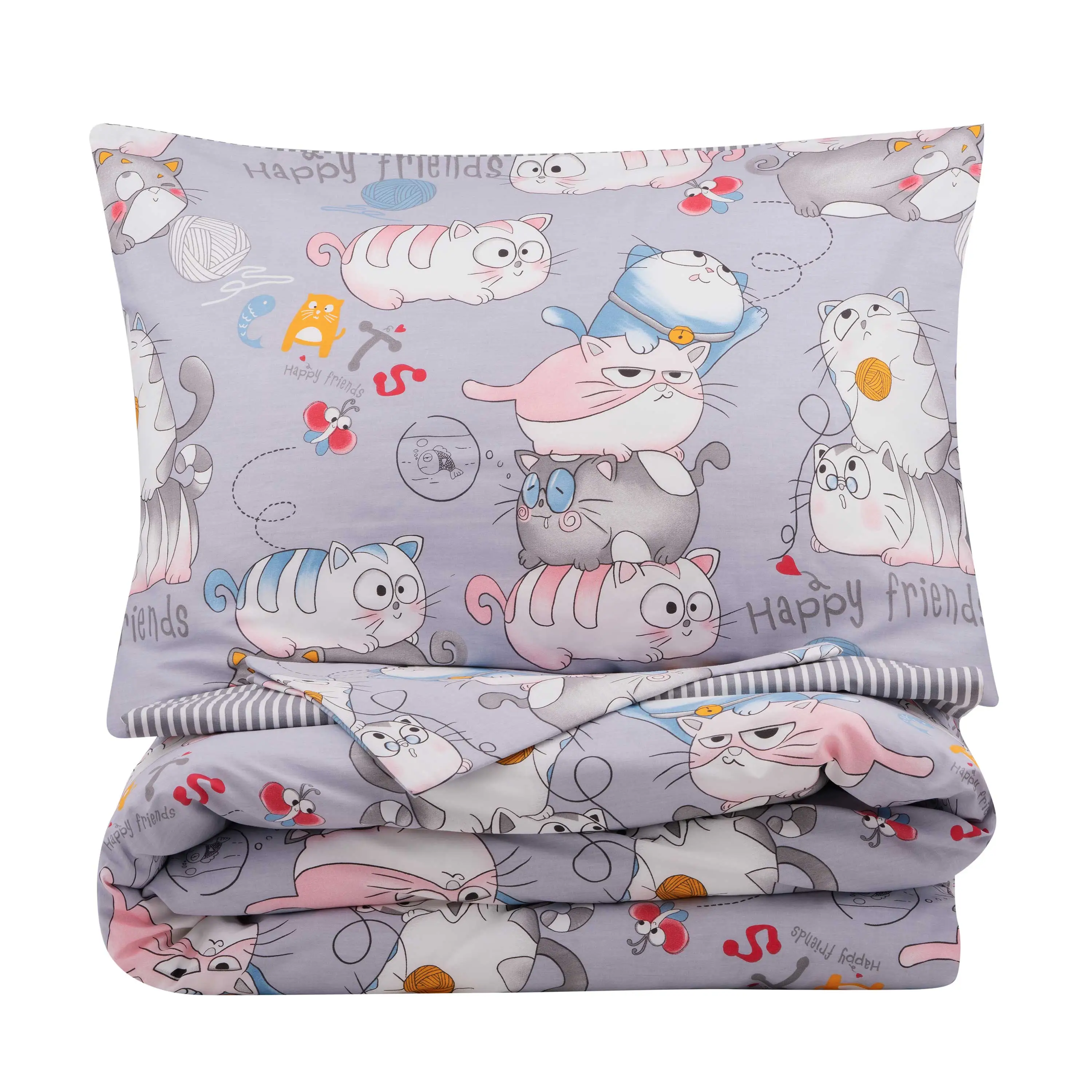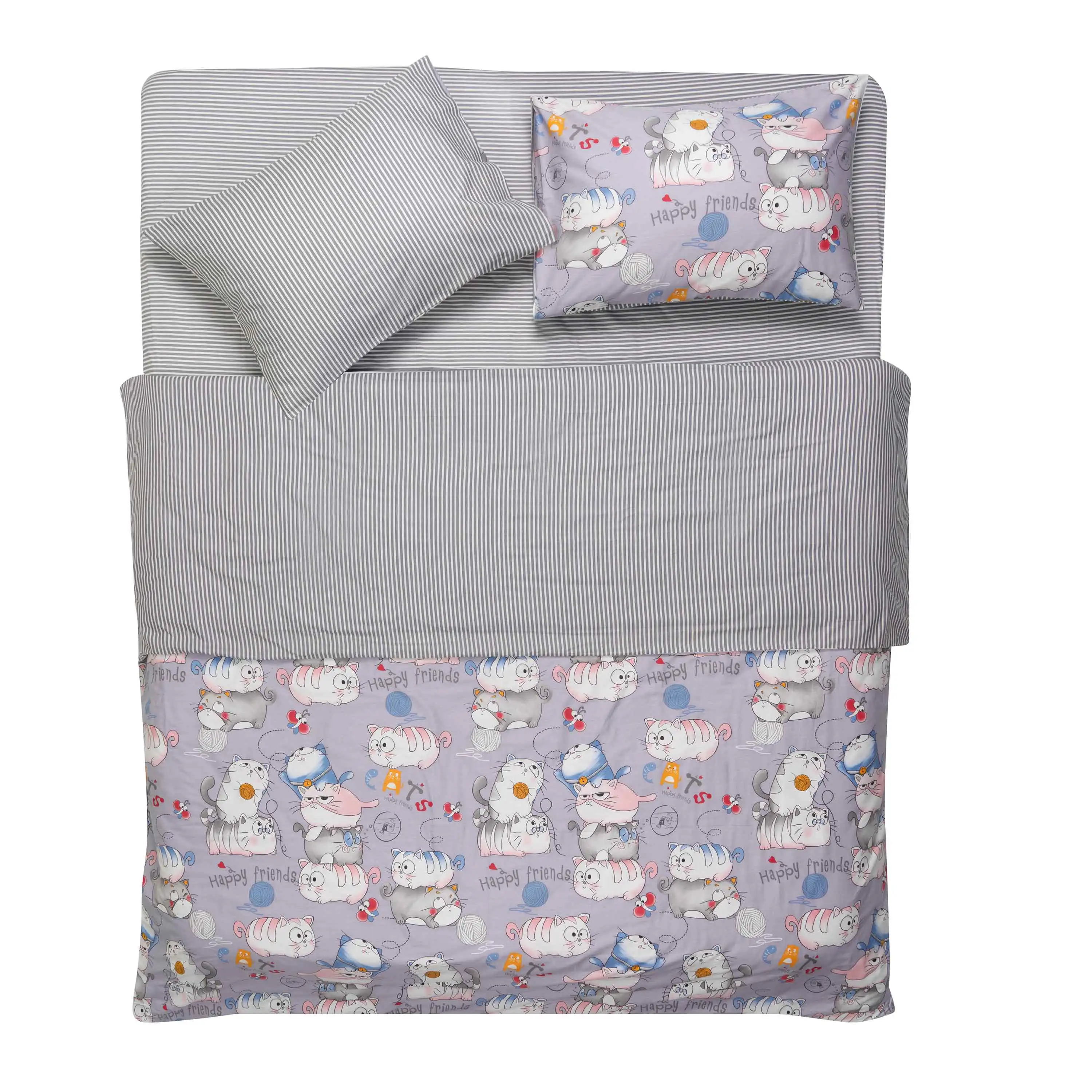 Комплект постільної білизни Gloria – це поєднання витонченого дизайну й безкомпромісної якості. Вироблена зі 100 % бавовняного сатину щільністю 200 ТС, постіль подарує винятковий комфорт і затишок. М’яка тканина ніжно пестить шкіру, забезпечуючи її дихання і створюючи відчуття свіжості та легкості. Яскравий дизайн із милим принтом і смужками на звороті підковдри додає спальному місцю особливого шарму.