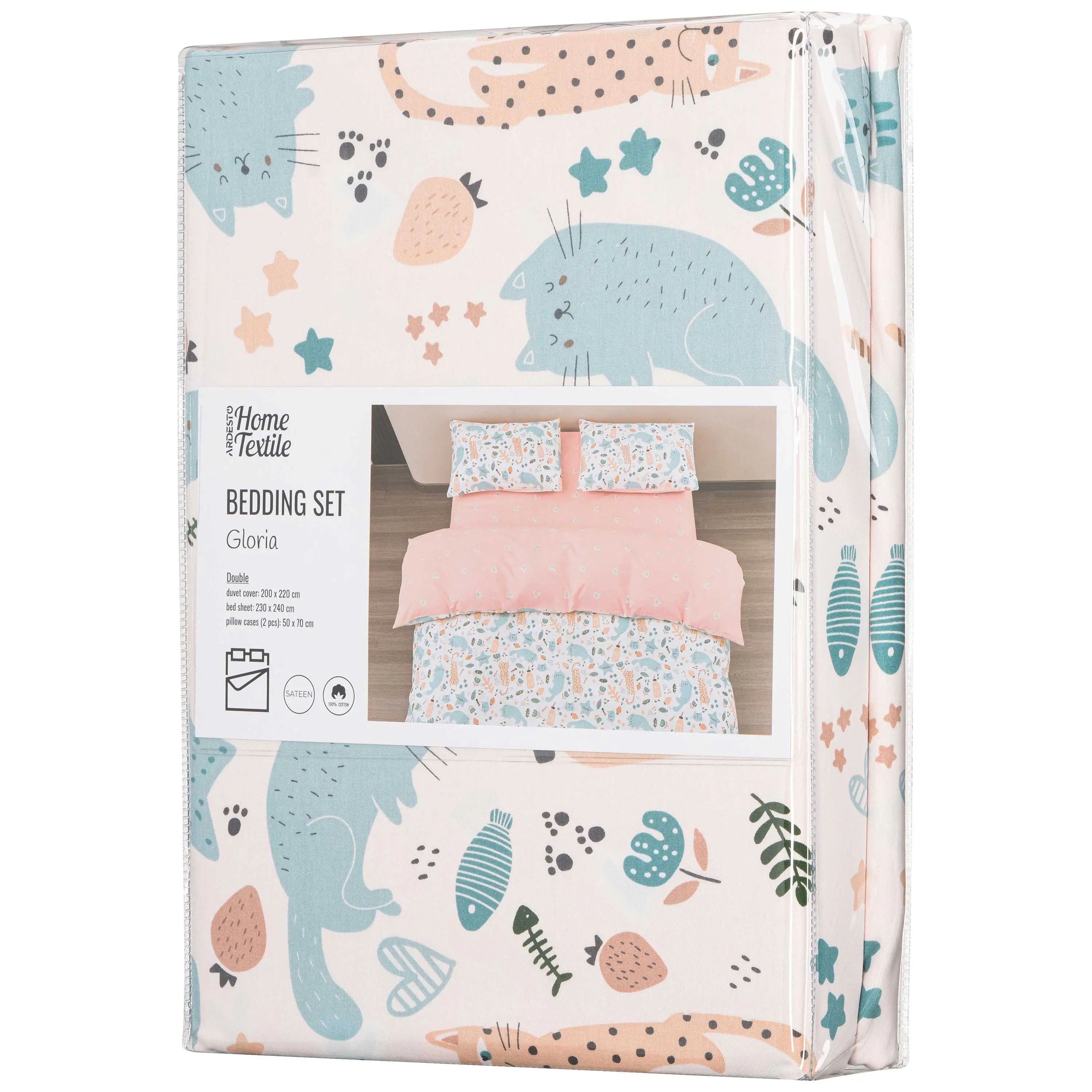 КПБ 2.0сп Ardesto Gloria, підковдра 200х220см, простирадло 230х240см, наволочки (2) 50х70см, 100% ба