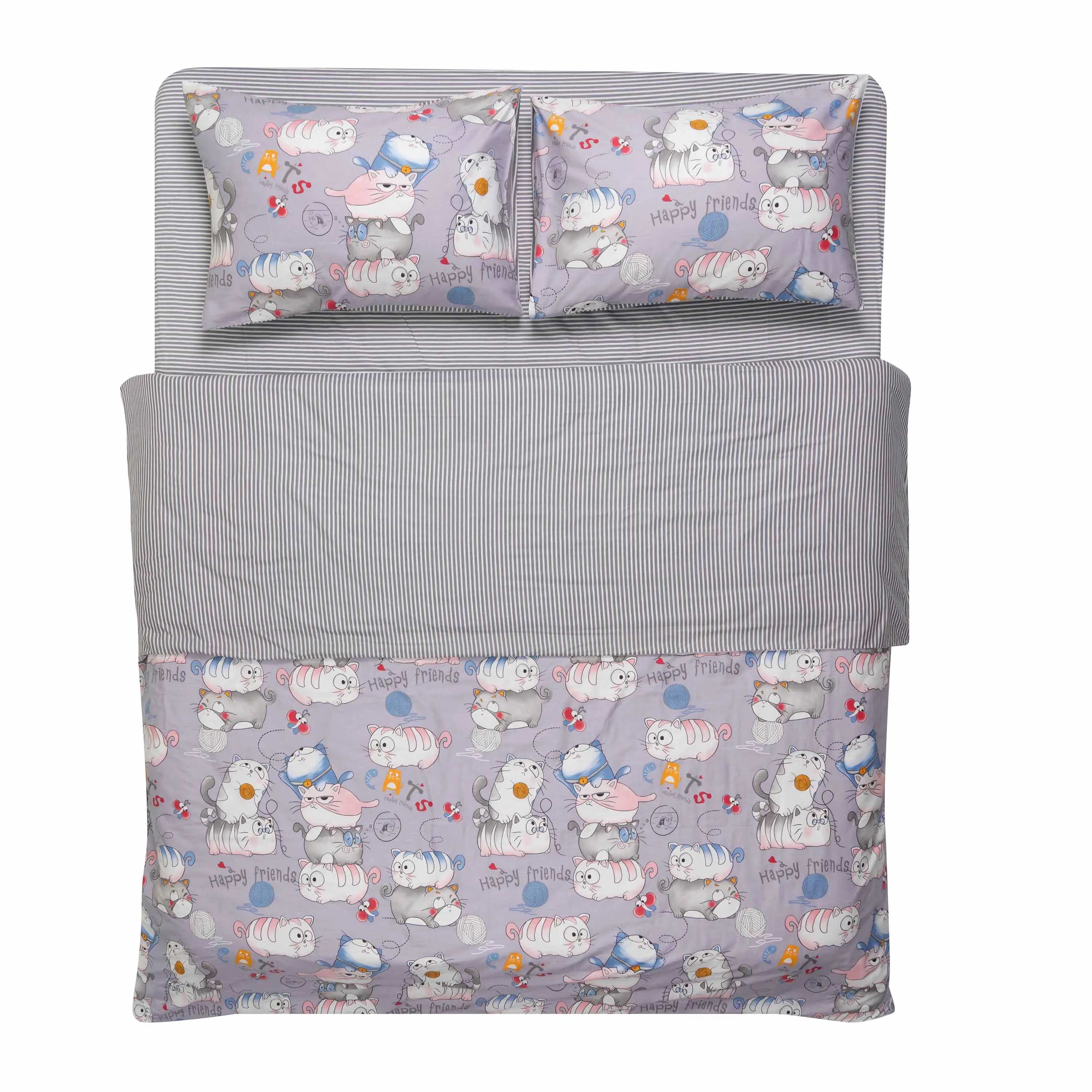 Комплект постільної білизни Gloria – це поєднання витонченого дизайну й безкомпромісної якості. Вироблена зі 100 % бавовняного сатину щільністю 200 ТС, постіль подарує винятковий комфорт і затишок. М’яка тканина ніжно пестить шкіру, забезпечуючи її дихання і створюючи відчуття свіжості та легкості. Яскравий дизайн із милим принтом і смужками на звороті підковдри додає спальному місцю особливого шарму.