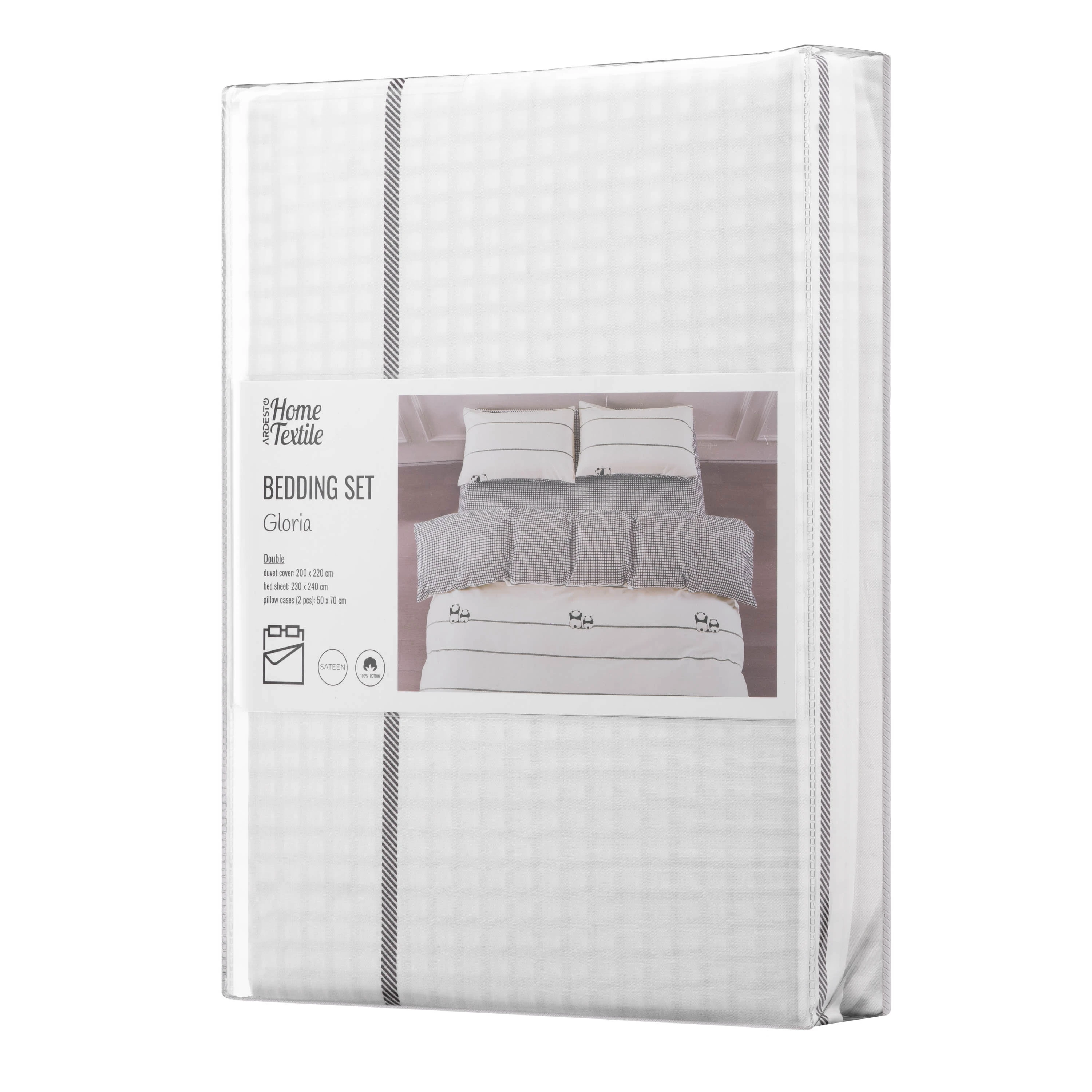 Комплект постільної білизни Gloria – це поєднання витонченого дизайну й безкомпромісної якості. Вироблена зі 100 % бавовняного сатину щільністю 200 ТС, постіль подарує винятковий комфорт і затишок. М’яка тканина ніжно пестить шкіру, забезпечуючи її дихання і створюючи відчуття свіжості та легкості. Дизайн із милим принтом додає спальному місцю особливого шарму.