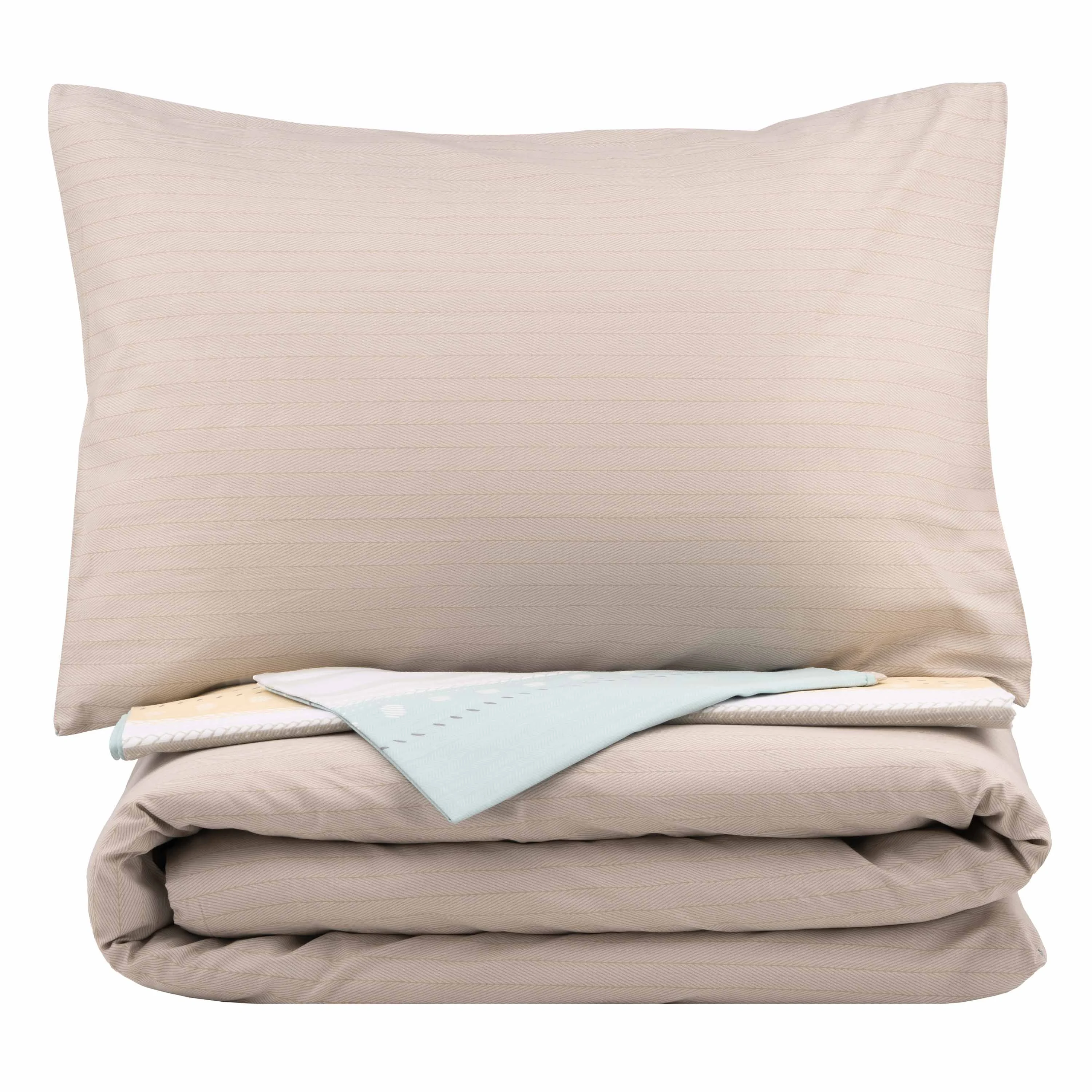 Комплект постільної білизни Gloria – це поєднання витонченого дизайну й безкомпромісної якості. Вироблена зі 100 % бавовняного сатину щільністю 200 ТС, постіль подарує винятковий комфорт і затишок. М’яка тканина ніжно пестить шкіру, забезпечуючи її дихання і створюючи відчуття свіжості та легкості. Дизайн ніжного коричневого відтінку зі смужками додає спальному місцю елегантності та сучасного стилю.