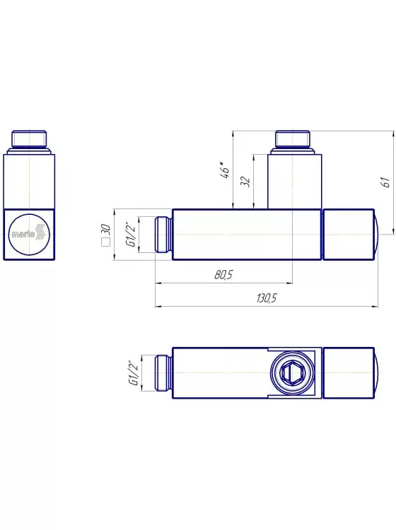 Кран кутовий квадрат служить для підключення рушникосушарки, сервісного обслуговування і регулювання протоку рідини.