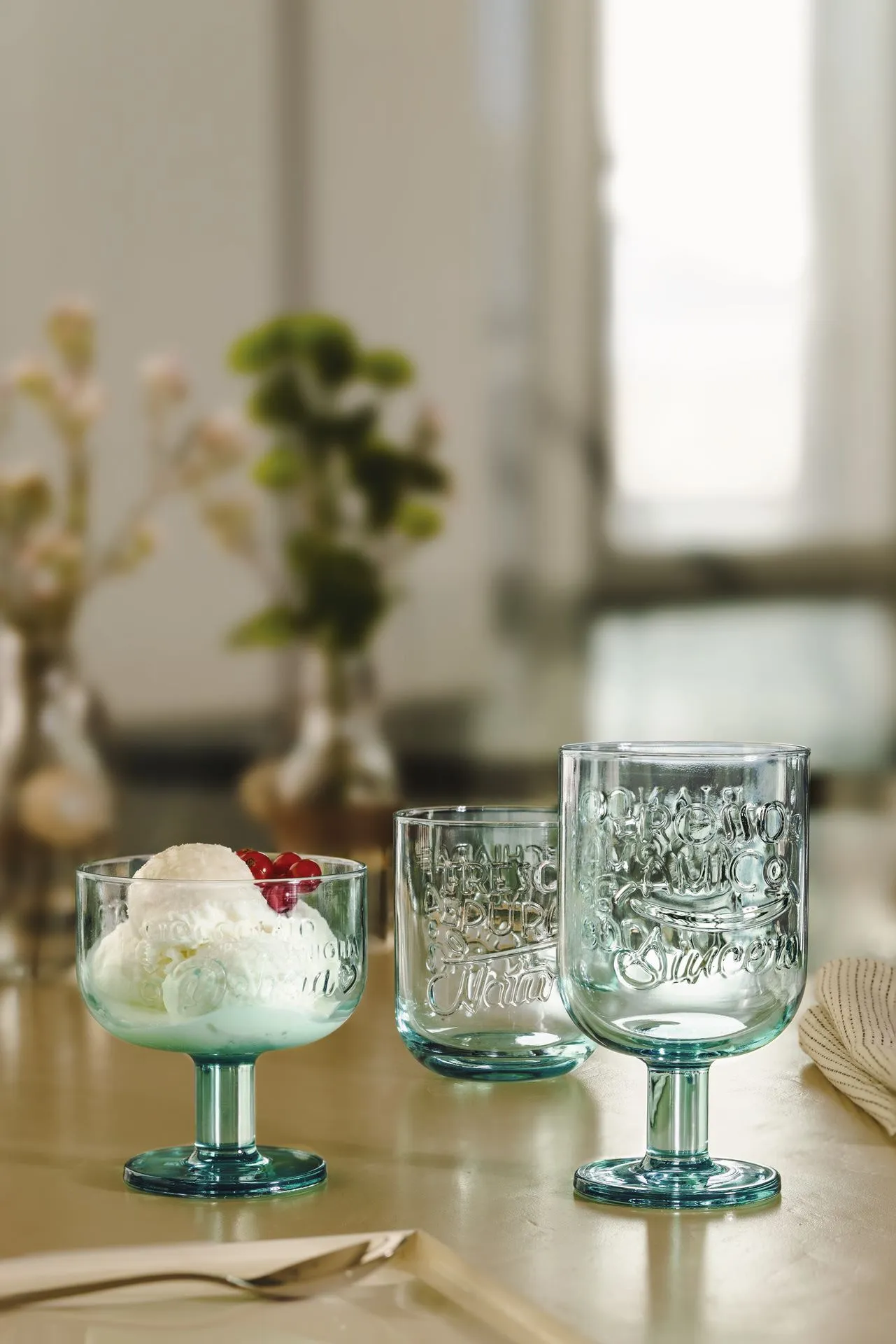 Ця креманка є частиною колекції Graphica, натхненної ретро-дизайном, що нагадує мотиви і графічні знаки 1930-х років. Оригінальним елементом, який відрізняє всю колекцію, є гравірування на склі з написом, що дотепно нагадує можливий вміст келихів і чашки.