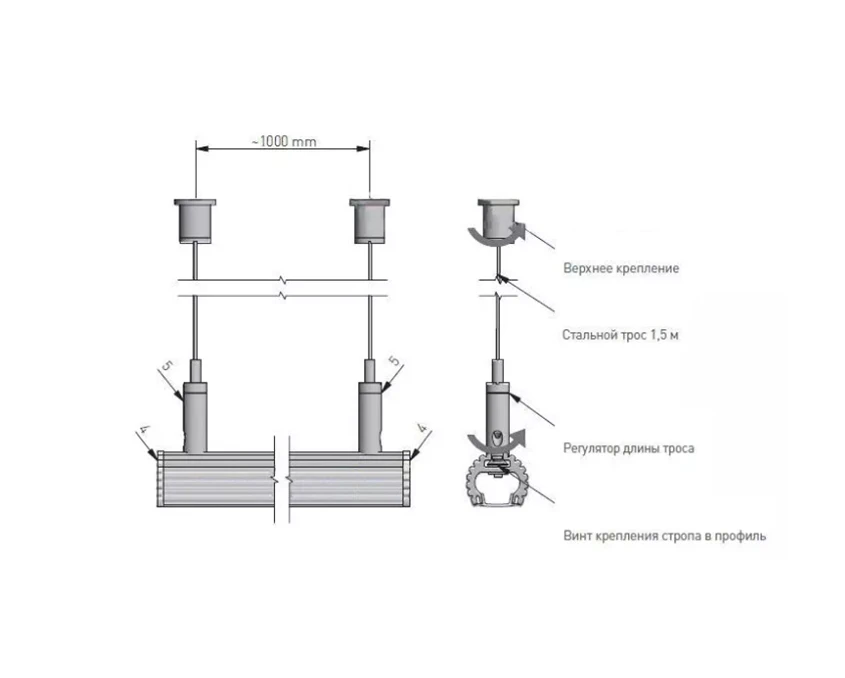 Крепление-трос GTV для профиля GLAX с радиатором и GLAXDR для профиля GLAX