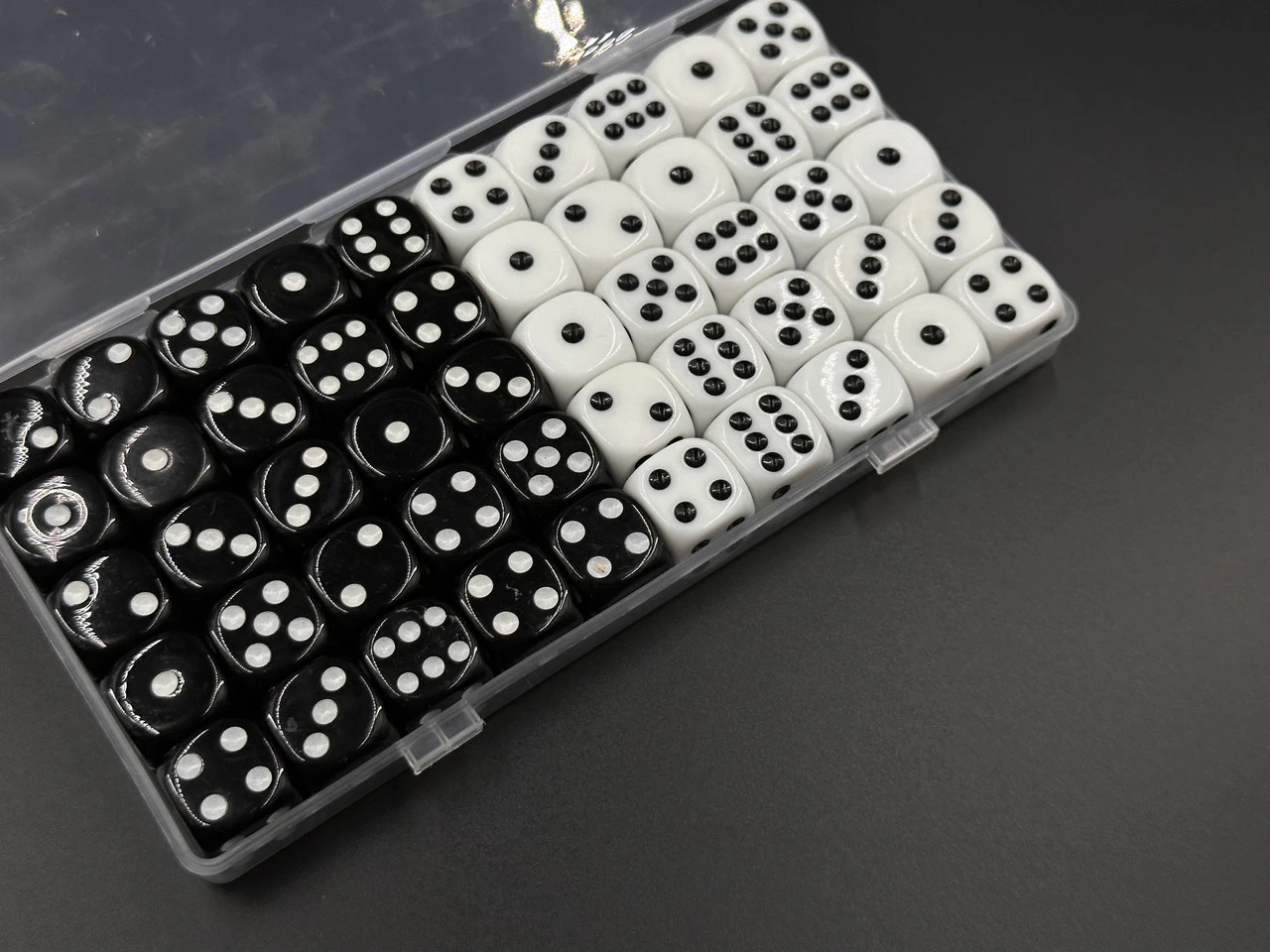 Набор игральных кубиков деревянных, 16мм, 50шт, Цвет «черно-белый», Набор игральных кубиков деревянных, 16мм, 50шт