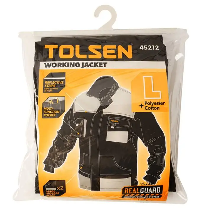 Робоча куртка Tolsen забезпечує надійний захист та комфорт під час виконання різноманітних робіт. Виготовлена з високоякісних зносостійких матеріалів, ця куртка забезпечує тривалий термін експлуатації та стійкість до механічних пошкоджень. Ергономічний дизайн гарантує свободу рухів, а спеціальні кишені дозволяють зручно зберігати необхідні інструменти. Куртка має вітро- та водовідштовхувальні властивості, що забезпечує додатковий комфорт при роботі на відкритому повітрі.