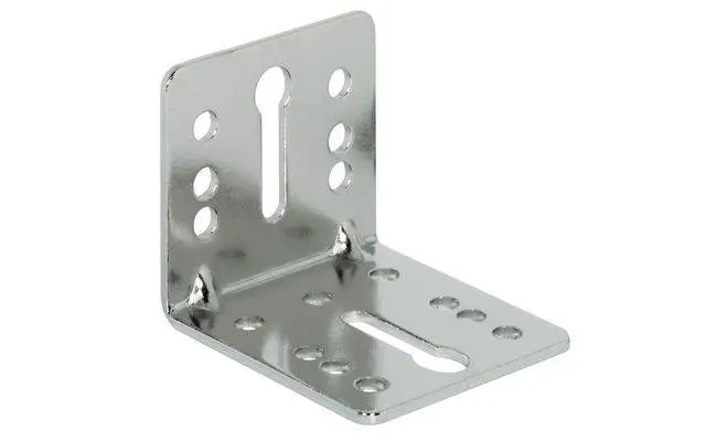 Монтажний кутник з 2 продольними пазами, виготовлений з нікельованої сталі. Розміри кутника (мм): ширина= 55х45мм, довжина= 50 мм.