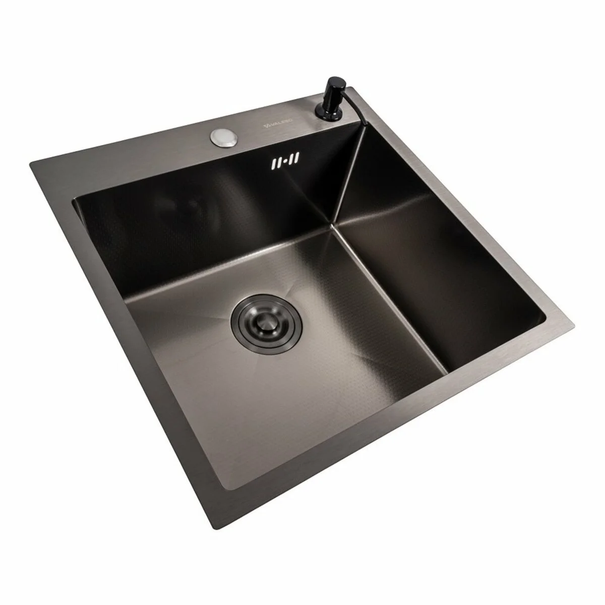 Кухонна мийка 50*50 PVD DECOR  чорна Valeso Handmade  (сифон круглий, 3,0/0,8) це відмінне стильне рішення для кухні невеликих та середніх розмірів. Лаконічний дизайн квадратної форми добре пасує різним інтер’єрам кухні.