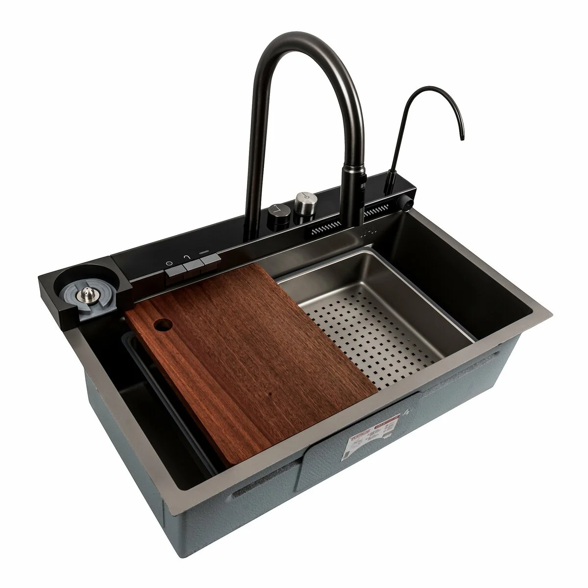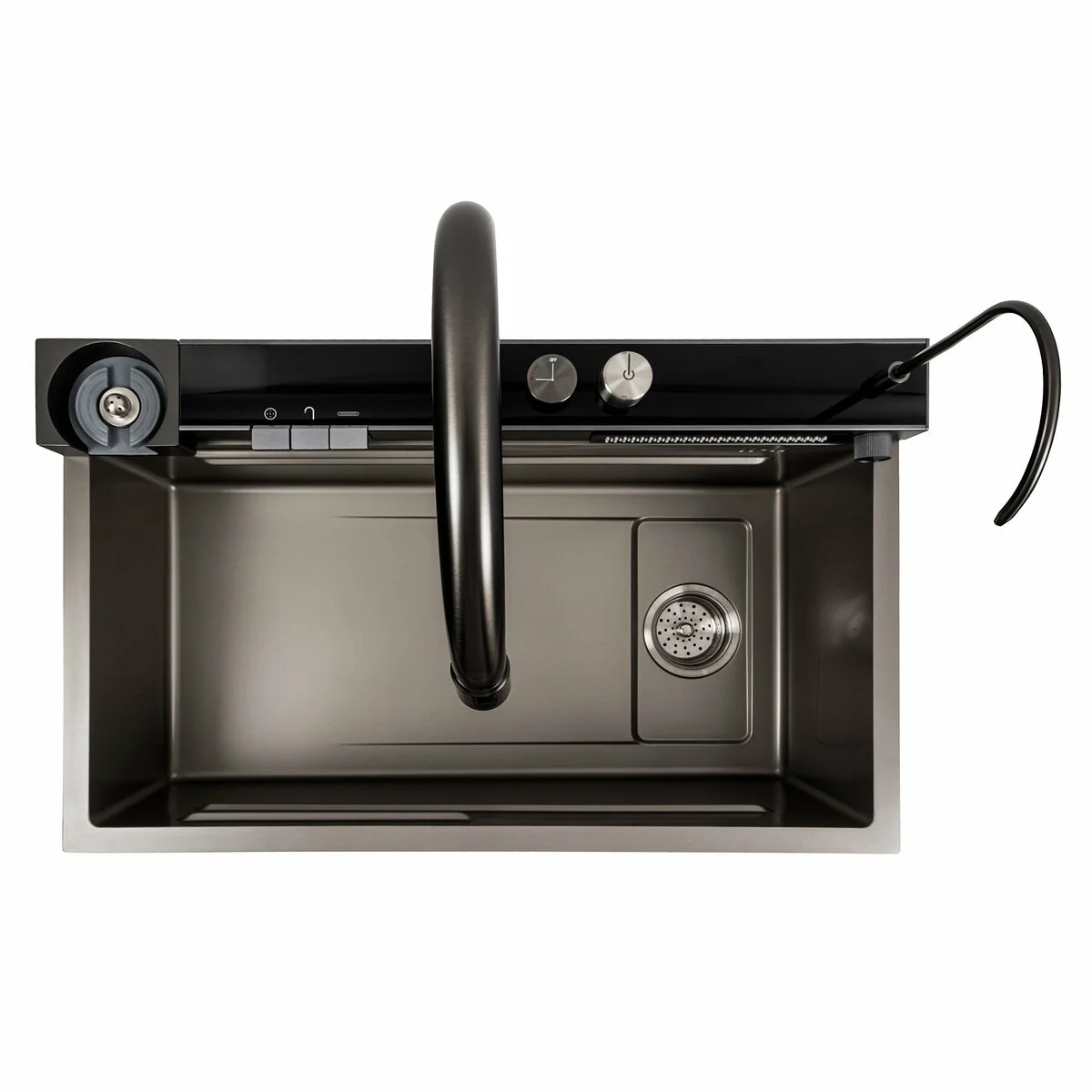 Кухонна мийка 75*46D PVD сіра Platinum Handmade "ВОДОСПАД"  — неймовірно популярна кухонна мийка, справжнє відкриття ! Її багатофункціональність і комплектація зі змішувачем роблять її незамінним аксесуаром для будь-якої кухні.