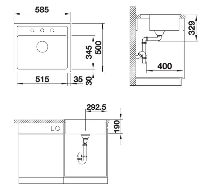 * *Враховувати ширину пристінного канта у разі встановлення мийка біля стіни або пеналу