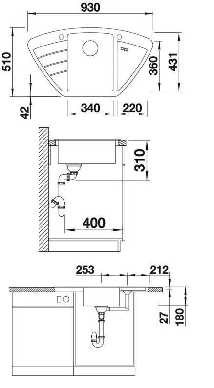 * *Врахувати ширину пристінного канта у разі встановлення миття біля стіни або пеналу